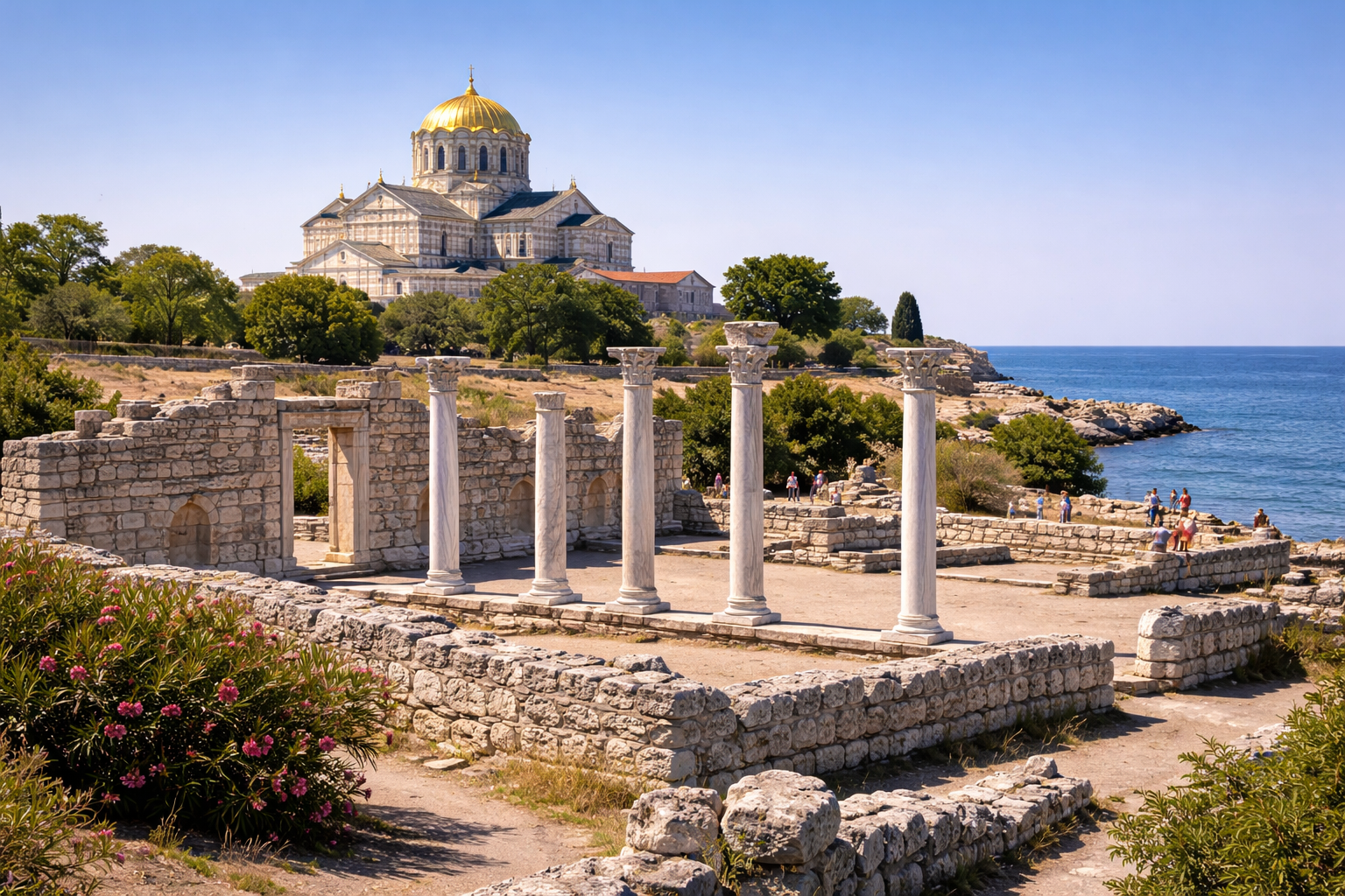 Археологический комплекс с руинами античного города. Греческие колонисты основали поселение в V веке до нашей эры, а его история развивалась несколько столетий: торговля, ремёсла и религиозная жизнь сделали Херсонес важным центром на побережье Черного моря. Во время археологических раскопок были найдены ступени древних улиц, фрагменты амфитеатра и остатки некогда процветавшей агоры, причём каждый найденный предмет рассказывает о повседневности и обрядах тех, кто жил здесь много веков назад.