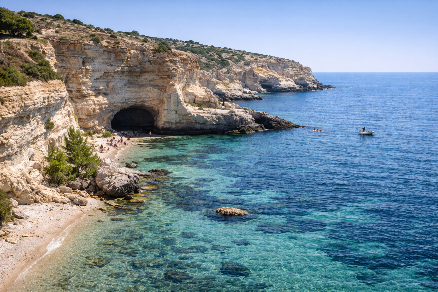 Береговая линия состоит из множества бухт и заливов, где сменяются скалистые обрывы и пологие пляжи. Морской рельеф формирует небольшие микроклиматы, а прибрежные склоны покрыты типичной для региона растительностью. В ясные дни вода в бухтах принимает глубокие оттенки синего, что делает прогулки по набережной особенно запоминающимися.